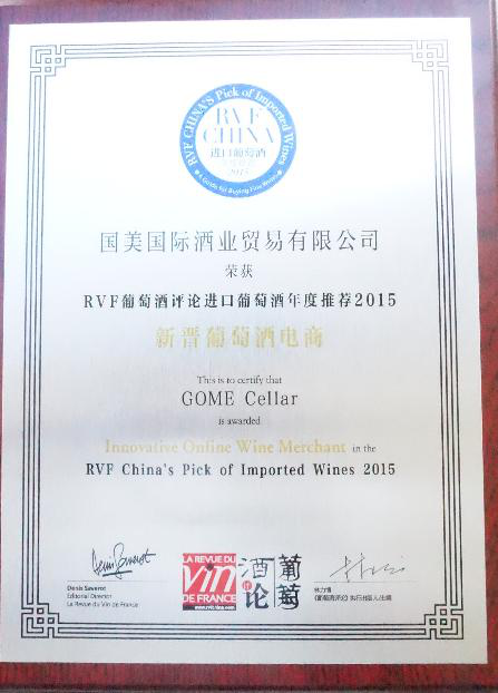 2015年12月13日,北京国美国际酒业贸易有限公司(以下简称GOME Cellar)作为得奖嘉宾,受邀赴三亚参加了由《葡萄酒评论》和财经网联合主办的“《葡萄酒评论》年度大奖”颁奖晚宴。