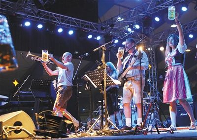 游客可以穿行于4个不同主题的大棚中,觥筹交错,来自德国慕尼黑啤酒节的4位金牌酒娘和5支驻场乐队被“原装进口”,感受中西文化的碰撞和交融。