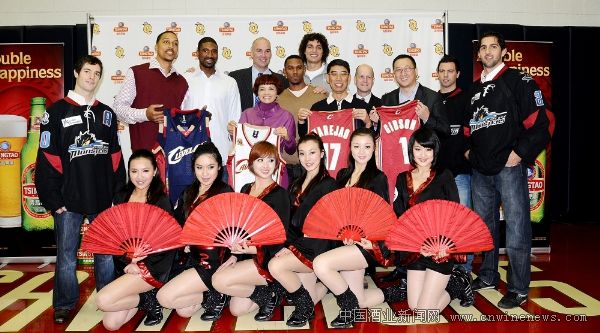 严旭对记者介绍说,“青岛啤酒作为一家拥有百年历史的国际著名啤酒企业,一直在寻求与企业有共同发展理念的对象,敢于挑战,用年轻的激情去感染更多受众,是双方共存的理念;所以,NBA骑士队正是这样的最佳对象之一。青岛啤酒与NBA骑士队的合作,不仅是商业上的双赢,我们还将共同开展系列慈善活动,助推青少年健康快乐成长这样的活动,来实现与社会的共赢,这也是我们合作的更深层次的原因。在青岛啤酒与NBA骑士队进行战略合作之时,6位啦啦宝贝将是联结激情理念的纽带,也是宣扬健康、快乐理念的最好载体,她们将起到真正的巨大的推动作用。”