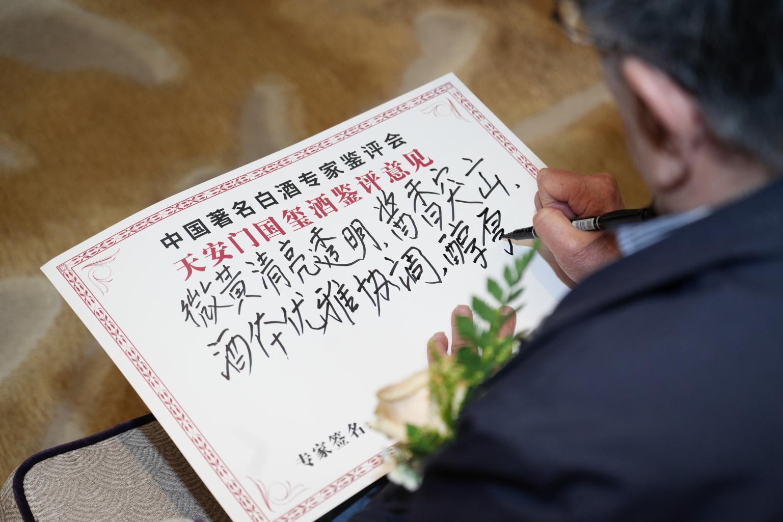 在发布会现场,酒界泰斗,中国著名白酒专家,华都公司“终身荣誉顾问”高景炎为天安门国玺酒撰写荐凭意见,这正是对产品品质实力的最好证明。